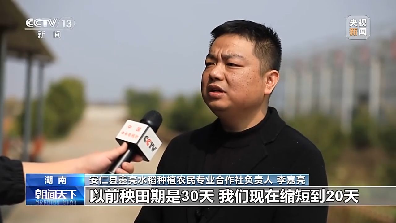 湖南省安仁縣鑫亮水稻種植農(nóng)民專業(yè)合作社負(fù)責(zé)人 李嘉亮:以前秧田期是30天,我們現(xiàn)在縮短到20天,可以為周邊的農(nóng)戶提供2.5萬(wàn)畝到3萬(wàn)畝的秧苗。