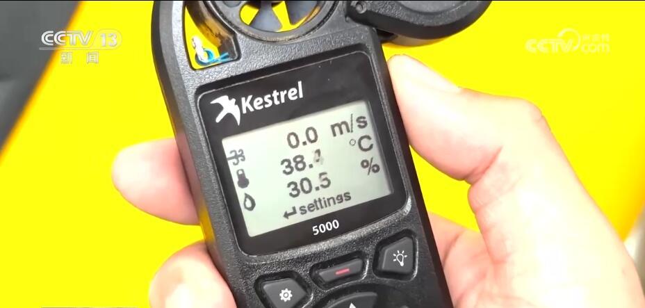 下午3時,工作人員手中的測試儀顯示,地表溫度已經超過了39℃。解維增和他的工友們還要穿上一身密不透風的防護服,開始下午的帶電檢修作業。