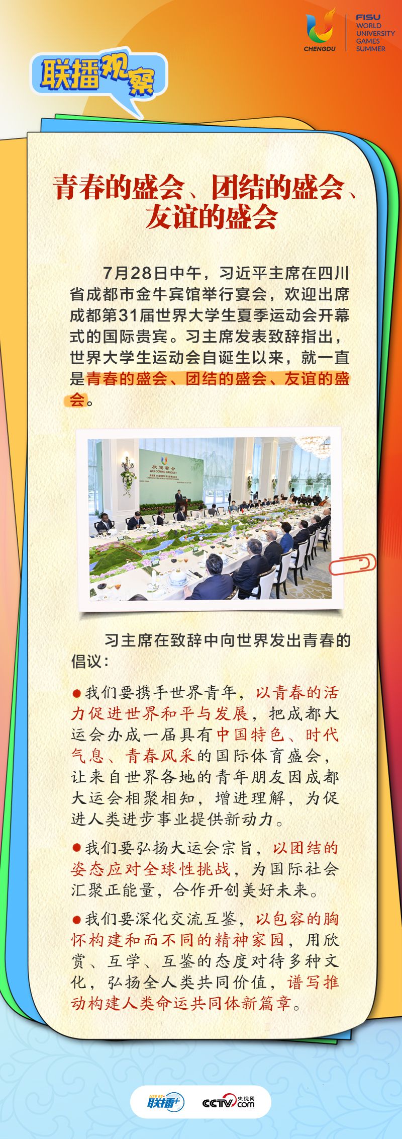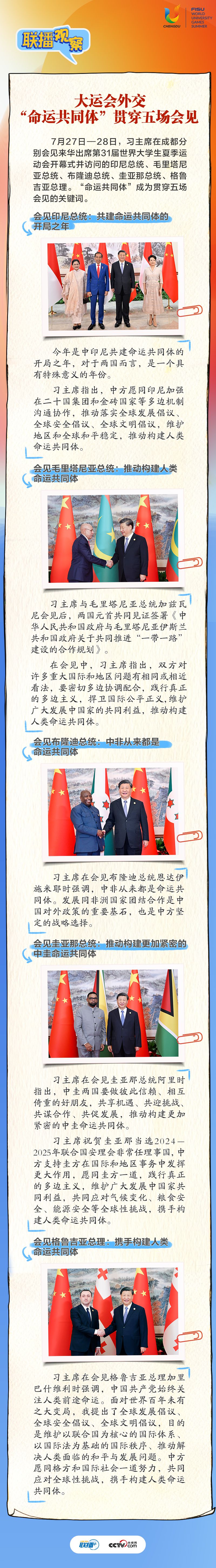 大運會時間,我國重要的主場外交也同步拉開帷幕,習近平主席的日程格外繁忙。央視網《聯播+》帶您沉浸式感受這場青春盛會為世界送出的別具匠心的“四川禮物”。