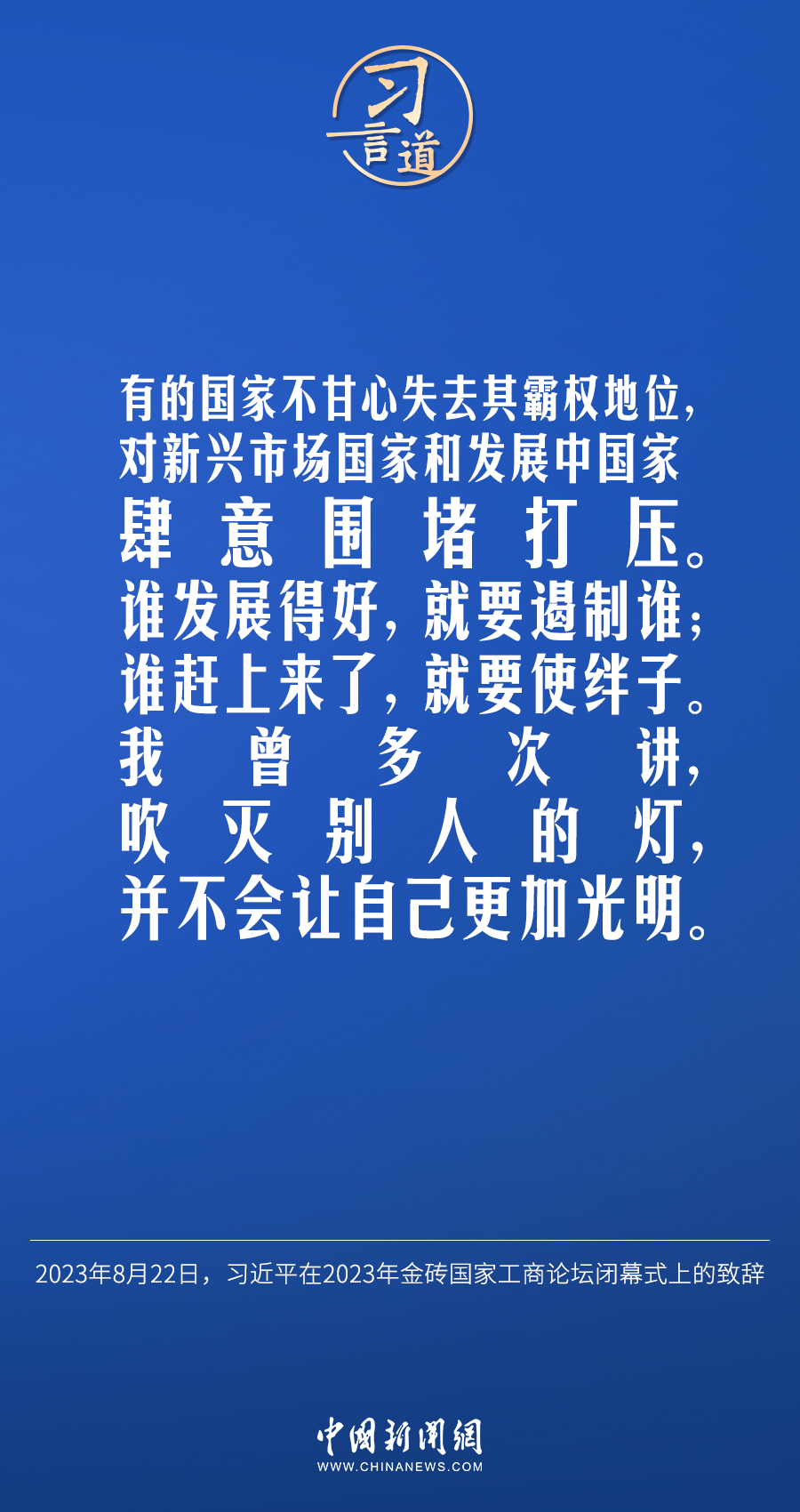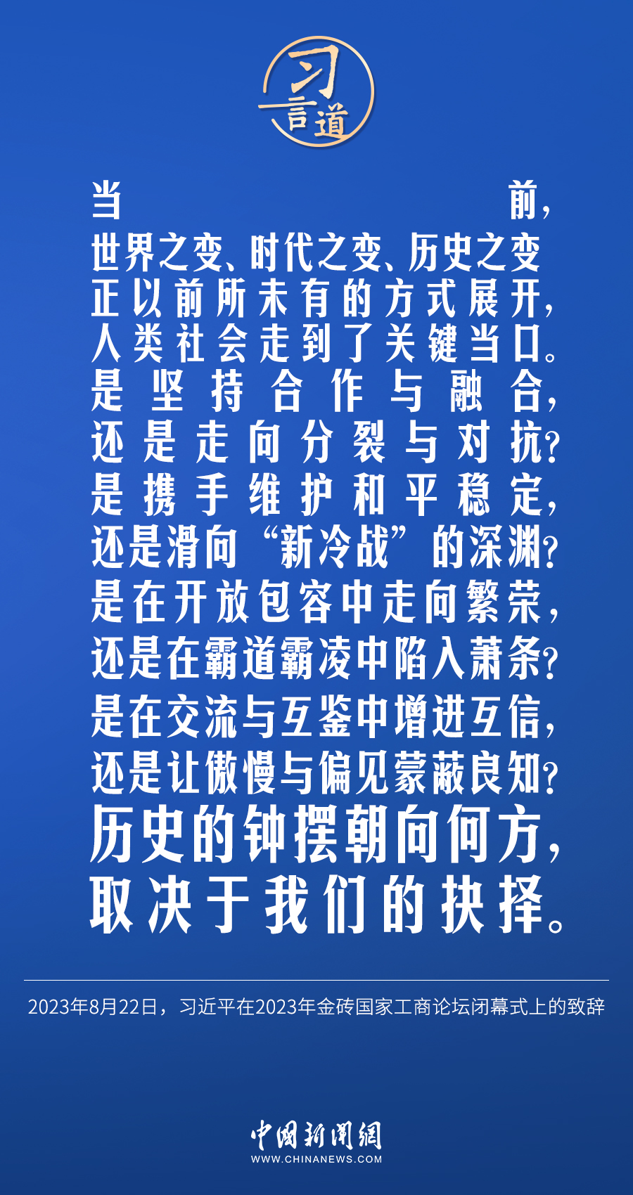 當地時間8月22日下午,中國國家主席習近平向約翰內斯堡金磚國家工商論壇閉幕式發表題為《深化團結合作 應對風險挑戰 共建更加美好的世界》的致辭。習近平指出——