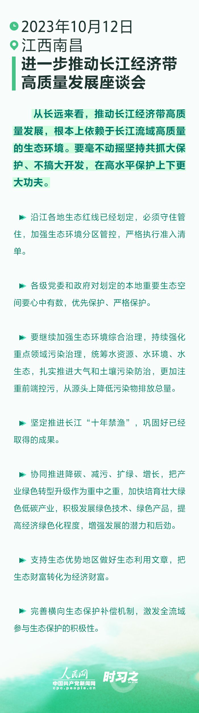 10月12日下午,習近平總書記在江西省南昌市主持召開進一步推動長江經濟帶高質量發展座談會并發表重要講話。座談會上,總書記指出,從長遠來看,推動長江經濟帶高質量發展,根本上依賴于長江流域高質量的生態環境。