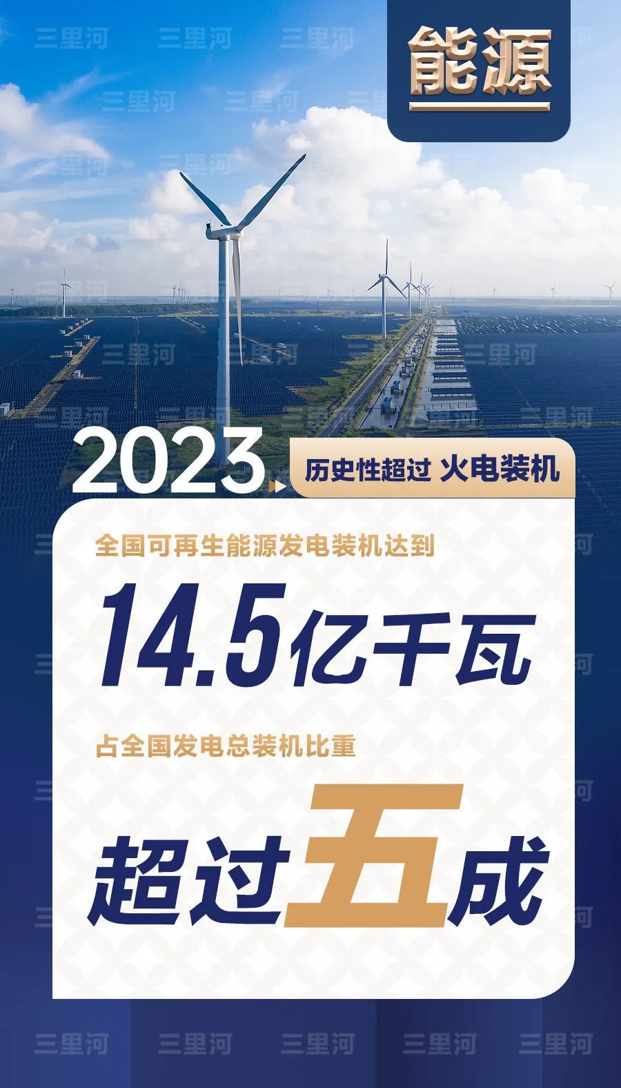 2023年,全國可再生能源發(fā)電裝機達到14.5億千瓦,占全國發(fā)電總裝機比重超過五成,歷史性超過火電裝機。