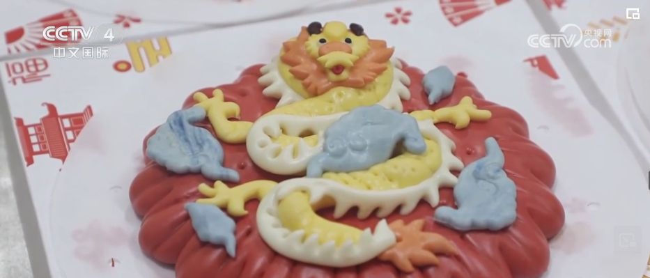 在山東,逢年過節(jié)人們也有做花餑餑、吃花餑餑的民俗。為迎合春節(jié)市場,不少加工廠已經(jīng)在趕制帶有龍年元素的花餑餑。面點師們先將面團搓長,再用果蔬汁調(diào)制,最后再揉捏造型。花餑餑披上“紅衣”,一只可愛的“醒獅龍”就活靈活現(xiàn)地出現(xiàn)在眼前。