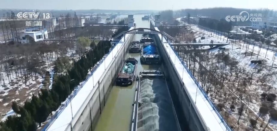 在京杭運河棗莊段的臺兒莊船閘,節后出現了少有的繁忙景象。河面上各類船舶往返穿梭,現在一天大約有200多艘貨船通過。