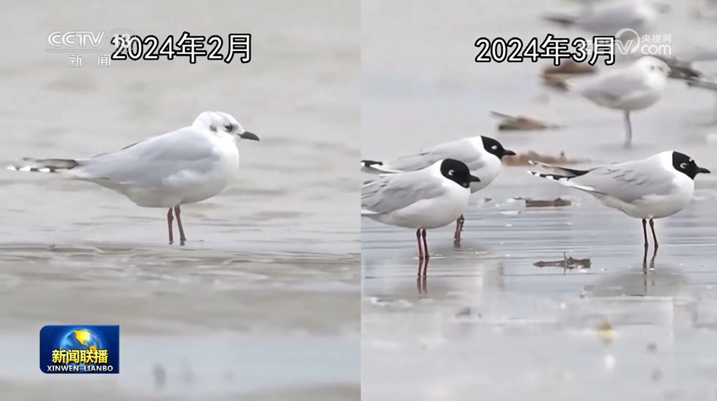 在江西鄱陽湖濕地,越冬候鳥遷徙進入高峰期,每天都有數萬只包括天鵝、灰雁、白鶴等候鳥北遷。工作人員通過AI識鳥系統可以密切關注候鳥數量、種群變化的數據,幫助科研人員作出有效科學研判。福建閩江河口濕地是東亞至澳大利西亞候鳥遷徙路線上重要驛站。這是國家一級重點保護野生動物黑嘴鷗,這幾天,工作人員通過AI鳥類智能監測模塊,觀測到黑嘴鷗從白色夏羽換成了黑色的繁殖羽,這也是它們北遷前最重要的一項準備工作。
