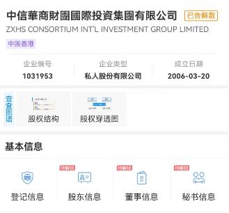 中新財經還以“華商財團”為關鍵詞通過企查查APP進行搜索,出現“中匯華商財團投資管理(北京)有限公司”、“中信華商財團國際投資集團有限公司”兩項最為相關的結果。前者為注冊資本1000萬元人民幣的小微企業,后者則被標注“已告解散”。