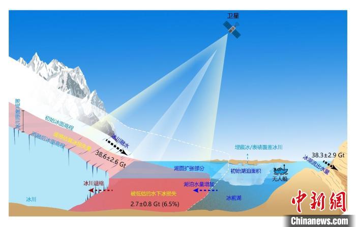 論文第一作者和共同通訊作者張國慶研究員介紹說,數字高程模型(DEM)廣泛用于估算全球冰川質量損失,但該方法只能觀測到冰川表面和水面,不能揭示發生在冰前湖泊水面以下的冰川質量損失。