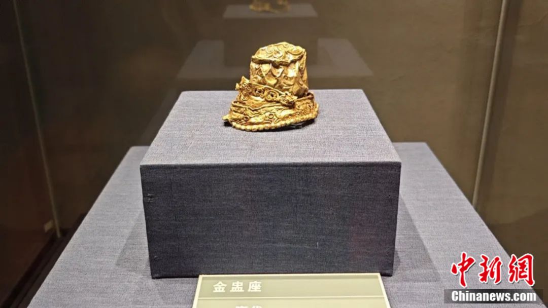 青海都蘭熱水墓群2018血渭一號(hào)墓出土的金容器及裝飾品。熱水聯(lián)合考古隊(duì)供圖