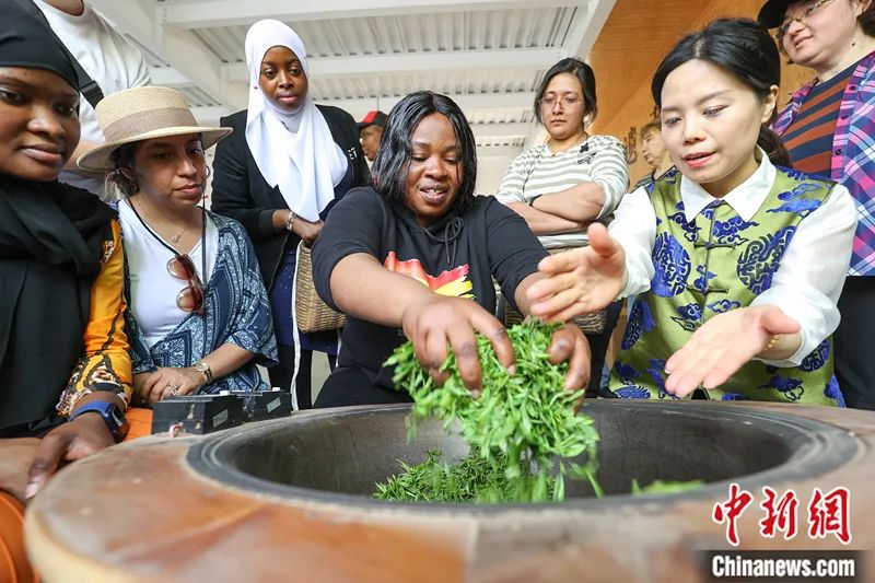 2023年4月,浙江省湖州市德清縣莫干山鎮東山村一茶園,外國留學生在學習制茶知識。王樹成 攝