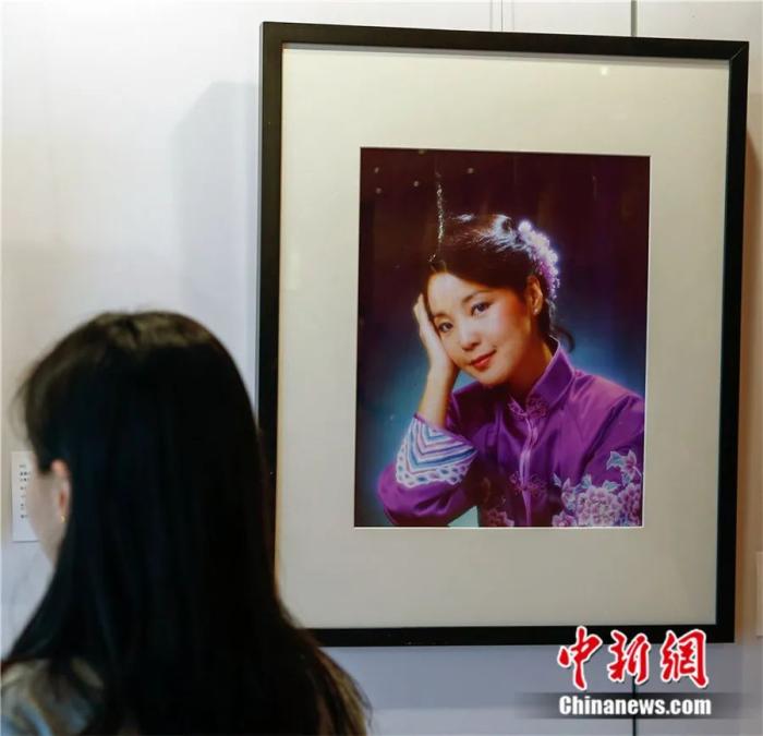 一位女士在北京華辰秋拍預(yù)展現(xiàn)場觀看二十世紀八十年代拍攝的鄧麗君肖像照。張浩 攝
