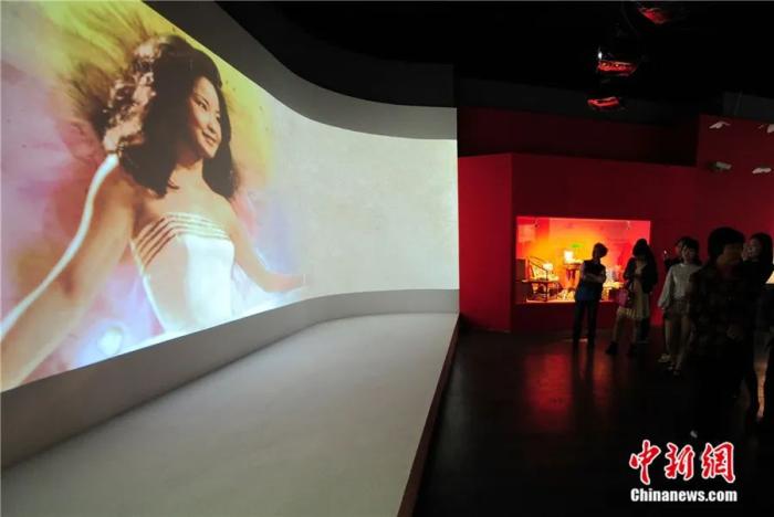湖北武漢,參觀者在“追夢——鄧麗君特展”上觀看鄧麗君的紀錄片。張暢 攝