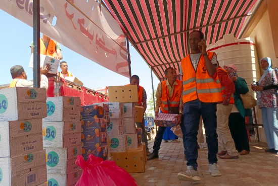 5月2日,在埃及南部阿斯旺省,工作人員為逃離蘇丹進入埃及的難民準備物資(手機拍攝)。新華社發(拉德萬攝)