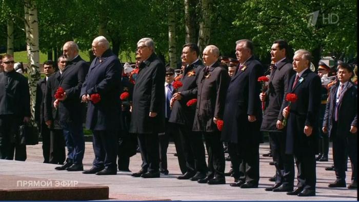 講話期間,普京宣布為紀(jì)念在衛(wèi)國戰(zhàn)爭中逝去的軍人和親人默哀一分鐘,閱兵現(xiàn)場肅立默哀。