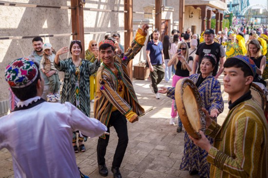 ↑人們在烏茲別克斯坦首都塔什干慶祝納烏魯斯節(jié)。