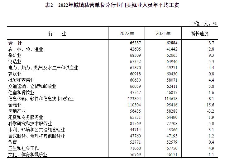 2022年城鎮私營單位分行業門類就業人員年平均工資。來自國家統計局網站