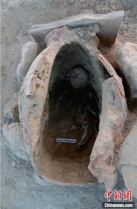 2018年貝什肯特墓地發現的甕棺葬。王建新 供圖