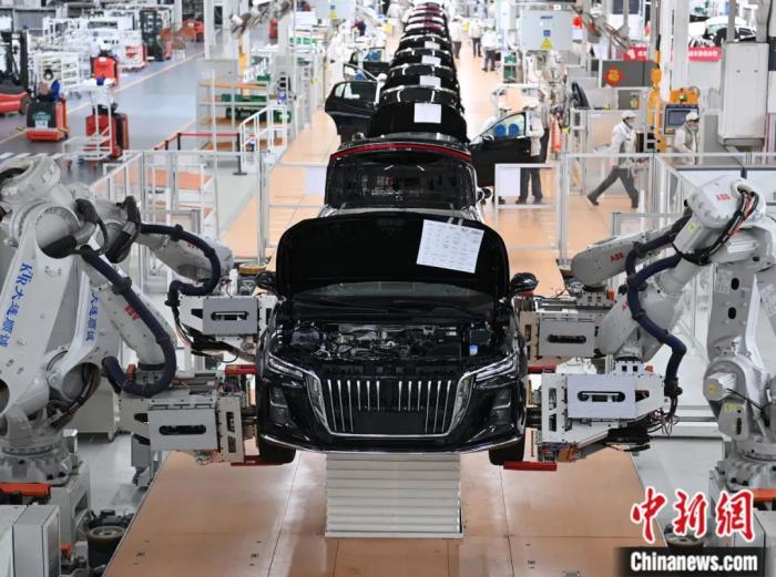 在吉林長春的中國一汽紅旗制造中心繁榮廠區,全自動機械手臂在裝配輪胎。智能化、自動化、無人化成為生產生活發展的趨勢。張瑤 攝