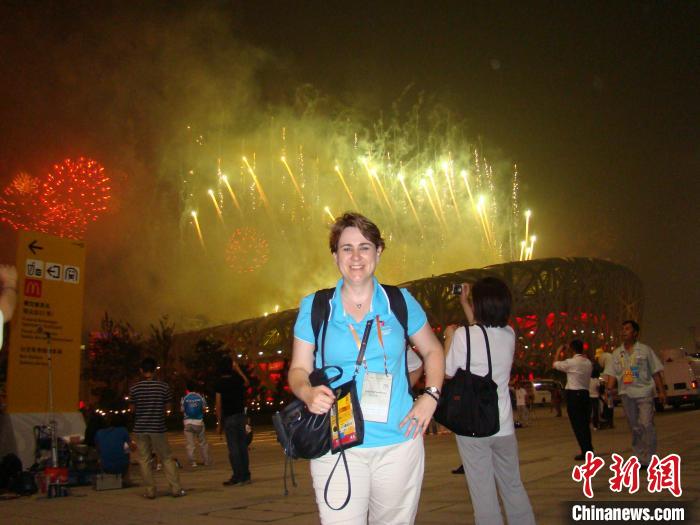 2008年,林莎莉在北京奧運會期間為澳大利亞媒體的記者擔任翻譯和顧問。(受訪者供圖)