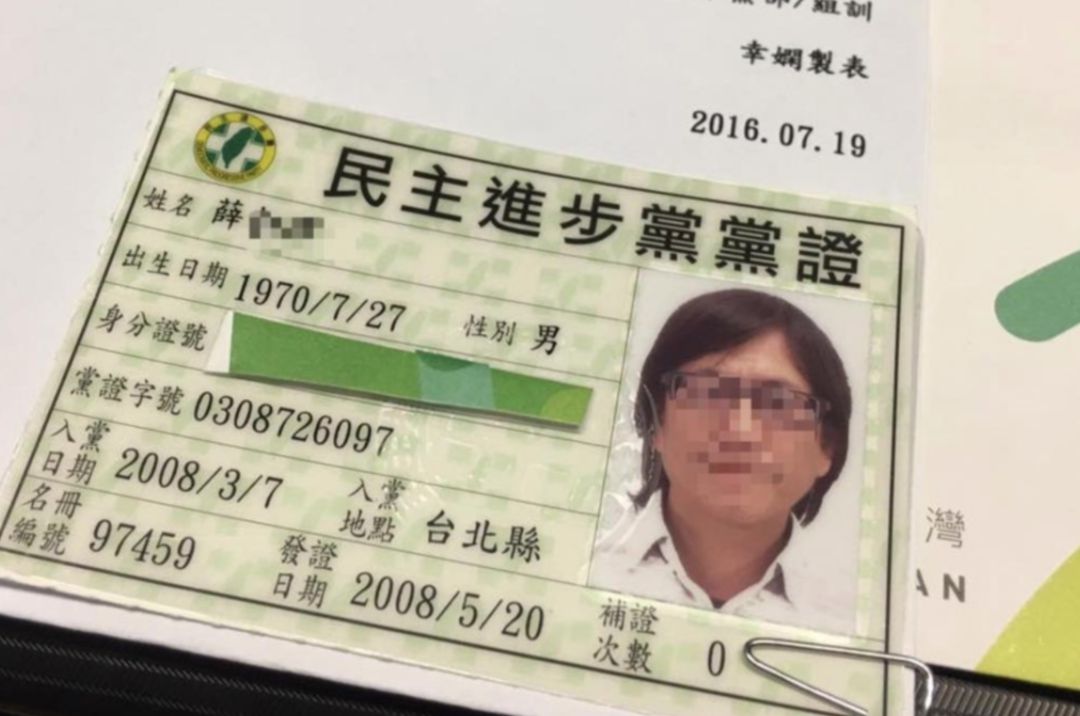 被指涉性騷擾案、且與民進黨高層關系密切的導演“輝哥”,被網友曬出其民進黨黨證。圖片來源:聯合新聞網 翻拍自該導演臉書。