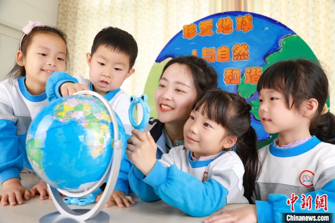 老師為孩子們講解地球結構知識。周洪峰 攝