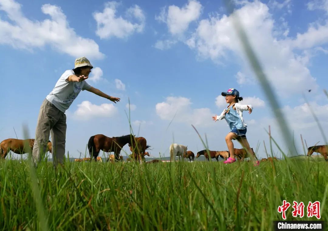 2016年8月,祖孫倆在塞罕壩機械林場內玩耍。楊可佳 攝