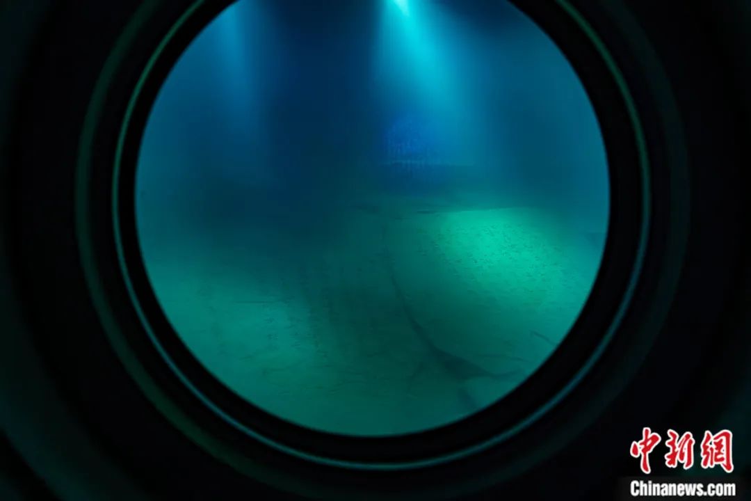 通過白鶴梁水下博物館觀測窗口拍攝“白鶴梁”題刻。何蓬磊 攝