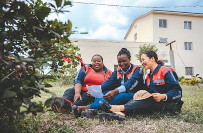 中國師父陳玲(右)是非洲之星鐵路運(yùn)營公司工電部電子設(shè)備檢修工區(qū)工長。在肯尼亞工作4年來,她見證了女學(xué)員們電務(wù)技術(shù)的成長。“現(xiàn)在她們都能獨當(dāng)一面。”陳玲說。朱迪思(左)是陳玲的學(xué)員之一,她從師父那里獲得的不僅是技術(shù),工作間隙對飲食、文化等多維度的交流同樣讓她受益匪淺。“我們之間是師徒,更是姐妹。”朱迪思說。圖為陳玲在休息時教學(xué)員唱中文歌曲。