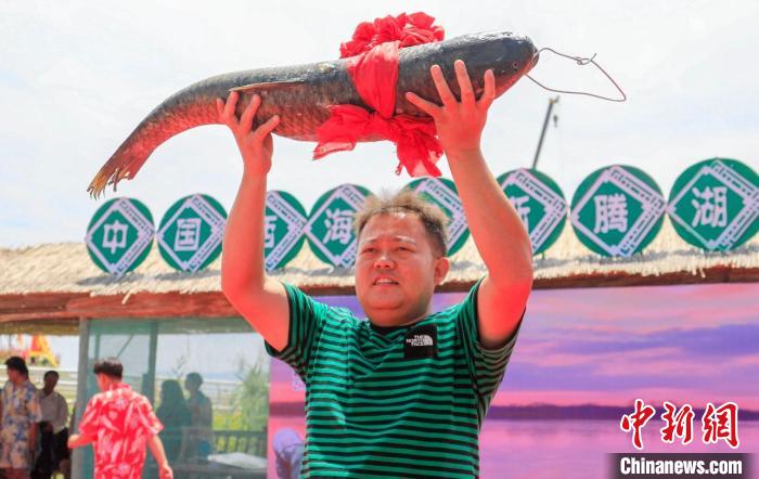 當天,“巨網捕魚”第一網捕撈5.1噸,其中最大的一尾頭魚——草魚,重達22公斤。拍賣師把頭魚綁上紅綢布,掛在拍賣架上,“20000”“52000”“99000”……現場游客紛紛舉牌加價,拍賣過程高潮迭起,隨著主持人的錘落鼓響,客商馬磊以9.9萬元的價格拍得頭魚。