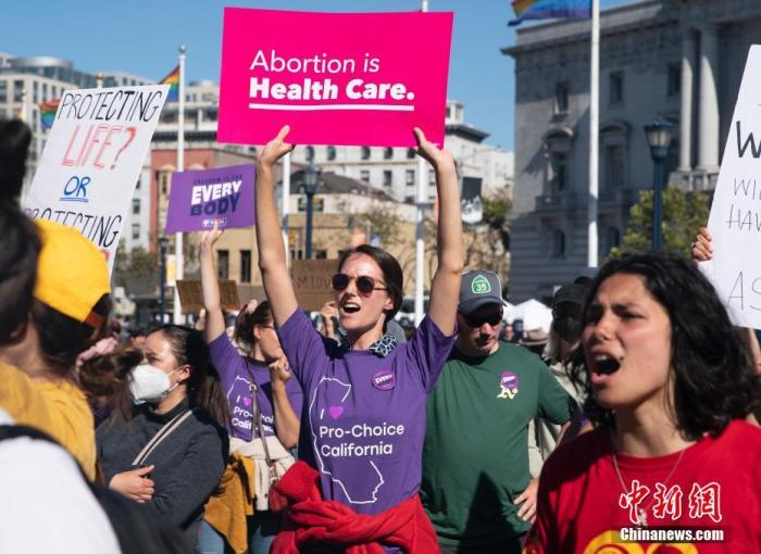 資料圖:當(dāng)?shù)貢r(shí)間2022年6月24日,美國舊金山民眾聚集在市政廳前,抗議美聯(lián)邦最高法院推翻“羅訴韋德案”。中新社記者 劉關(guān)關(guān) 攝