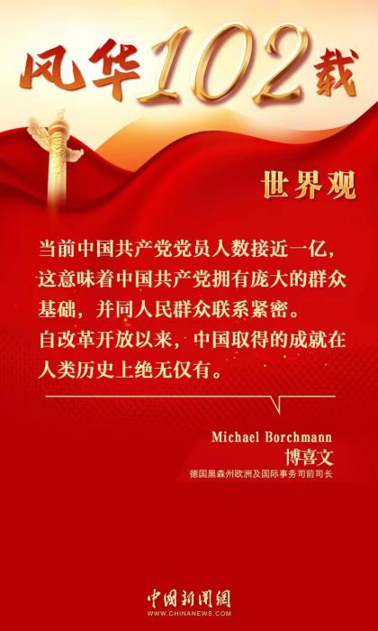 中新網7月5日電 (陳天浩)2023年是中國共產黨建黨102周年。近日,德國黑森州歐洲及國際事務司前司長博喜文(Michael Borchmann)在接受中國新聞網專訪時表示,中國共產黨的成功離不開同人民群眾的緊密聯系。