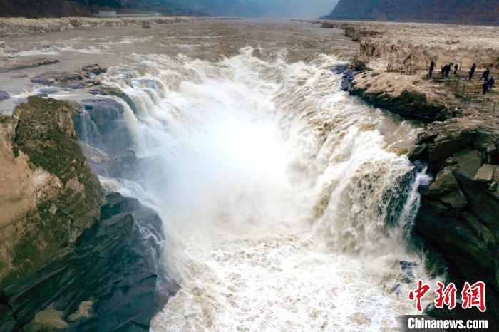 2023年2月11日,陜西延安,壺口瀑布波濤奔騰。(無人機照片) 霍勇 攝