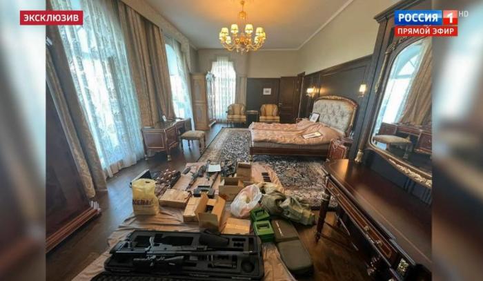 據(jù)報道,“俄羅斯1”電視頻道在“60分鐘節(jié)目中”展示了普里戈任辦公室和家中的畫面,執(zhí)法人員在那里發(fā)現(xiàn)了現(xiàn)金、假發(fā)、護照、武器等,房屋的院子里還停放著一架小型直升機。