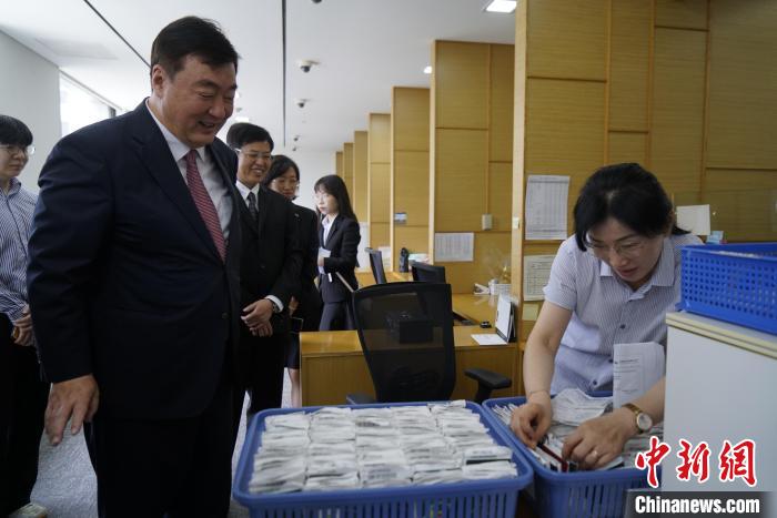 中新社首爾7月7日電 (記者 劉旭)當地時間7日,中國駐韓國大使邢海明赴首爾中國簽證申請服務中心調研,了解中心運營情況,慰問中心工作人員,并同現場簽證申請人親切交流。使館領僑處公參鐘洪糯陪同。