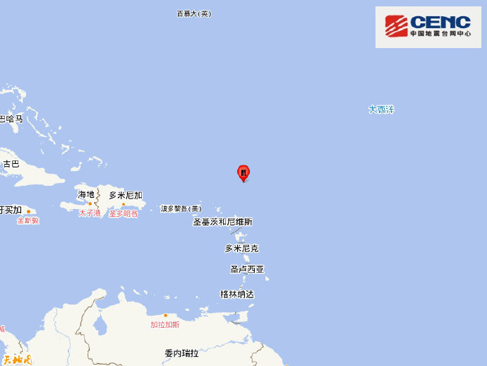 中新網7月11日電 據中國地震臺網正式測定,7月11日4時28分在背風群島(北緯20.00度,西經61.20度)發生6.6級地震,震源深度10千米。(完)
