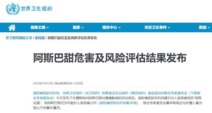 針對阿斯巴甜,世界衛生組織官網發布的文章指出,JECFA認為,所評估的數據表明,沒有充分的理由改變以往確定的阿斯巴甜日容許攝入量,即每公斤體重40毫克以內,并重申人們可在這一限度內放心食用。