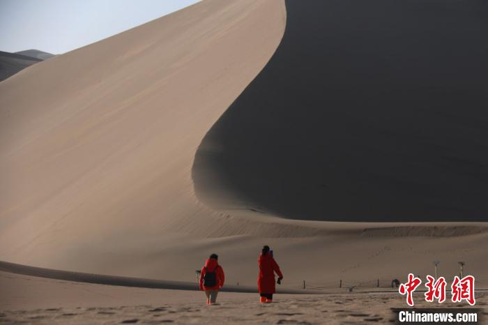 資料圖,游客在甘肅省敦煌市鳴沙山月牙泉景區游覽。 張曉亮 攝