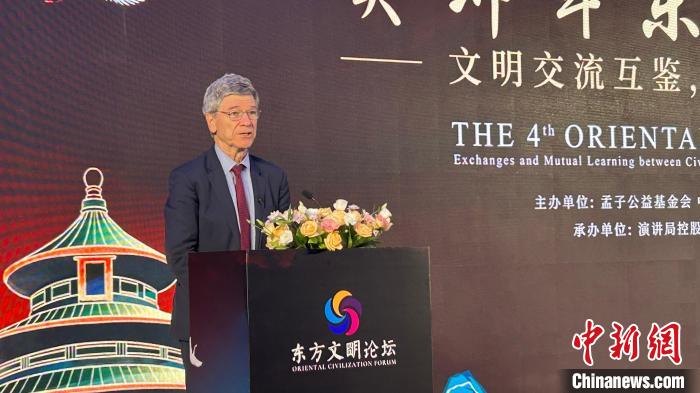 2023年7月23日,哈佛大學國際研究中心主任、哥倫比亞大學經濟學教授杰弗里·薩克斯在第四屆東方文明論壇上作主題演講。 中新社記者 鄧力垚 攝