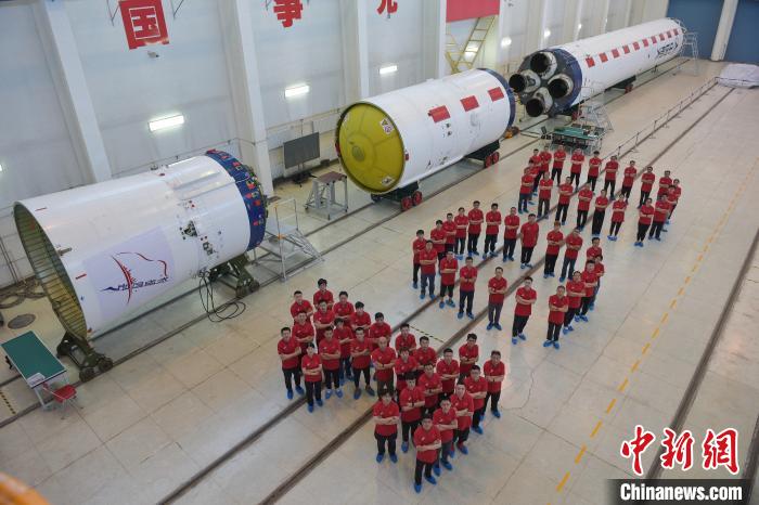 長征四號丙運載火箭研制歷程,研制團隊站成數(shù)字100的隊形。(中國航天科技集團有限公司八院供圖)