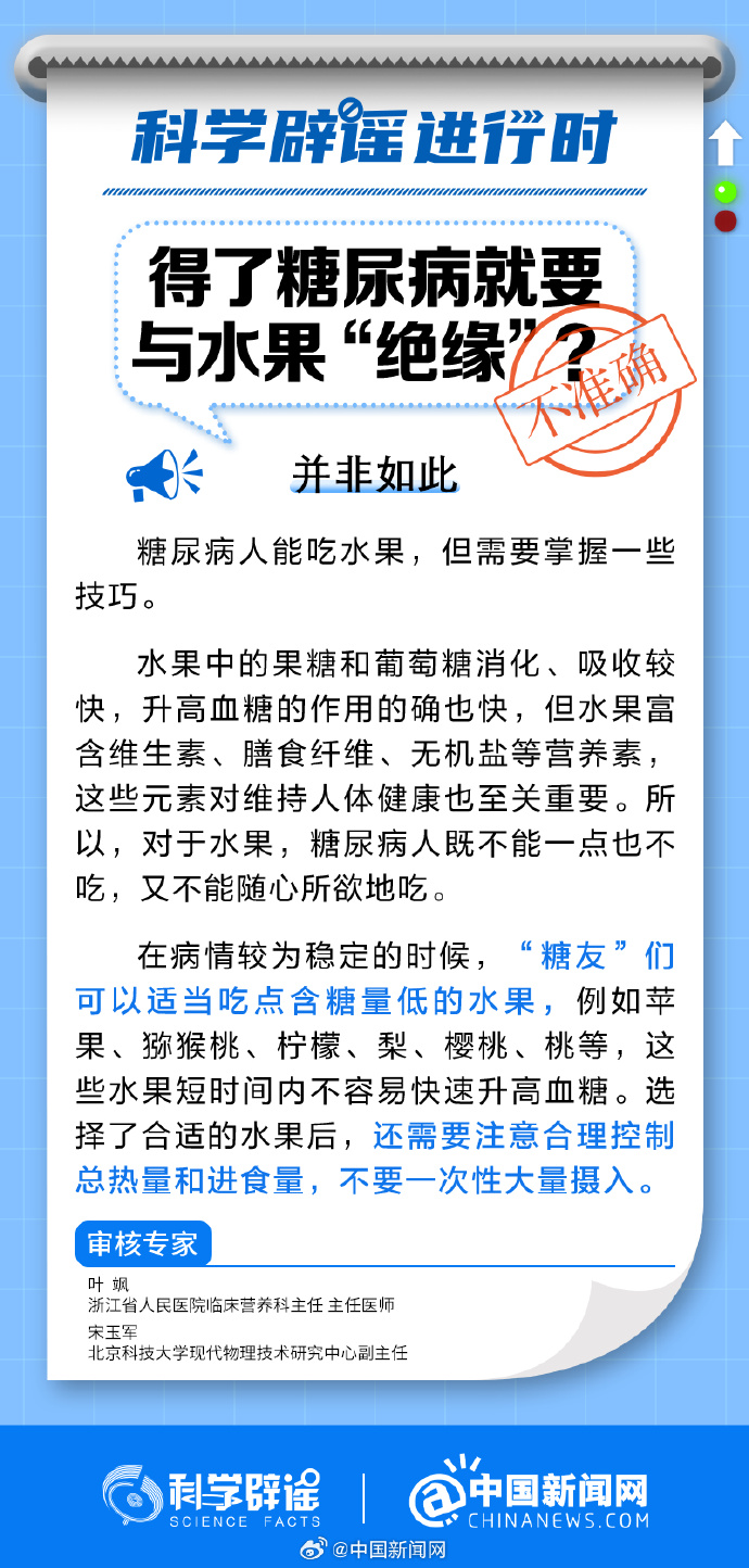 中新網8月21日電 在病情較為穩定的時候,“糖友”們可以適當吃點含糖量低的水果,例如蘋果、獼猴桃、檸檬、梨、櫻桃、桃等,這些水果短時間內不容易快速升高血糖。選擇了合適的水果后,還需要注意合理控制總熱量和進食量,不要一次性大量攝入。(來源:@科學辟謠 @中國新聞網 )