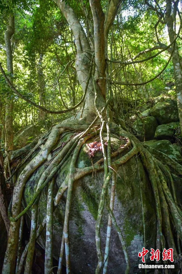 資料圖:熱帶雨林中拍攝的“根抱石”現(xiàn)象。駱云飛攝