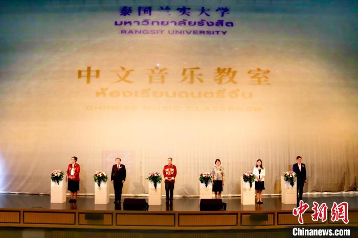 中新網9月21日電(李映民 趙婧楠)泰國蘭實大學與中外語言交流合作中心合作設立的泰國首家“中文音樂教室”19日舉行揭牌典禮。蘭實大學校長阿塔威特·烏萊拉、中國駐泰國大使館教育參贊馮俊英、蘭實大學文學院院長潘心媛等出席活動并致辭。蘭實大學管理層、中外語言交流合作中心代表、泰國各孔子學院、多所高校師生代表等750人出席活動。