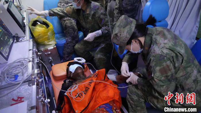10月9日22時(shí)許,中國(guó)南沙永暑礁醫(yī)院順利完成一名受傷越南漁民的毀損性骨折手術(shù),成功對(duì)其實(shí)施救治。圖為醫(yī)務(wù)人員在救護(hù)車內(nèi)進(jìn)行緊急救治。 林錦堂 攝