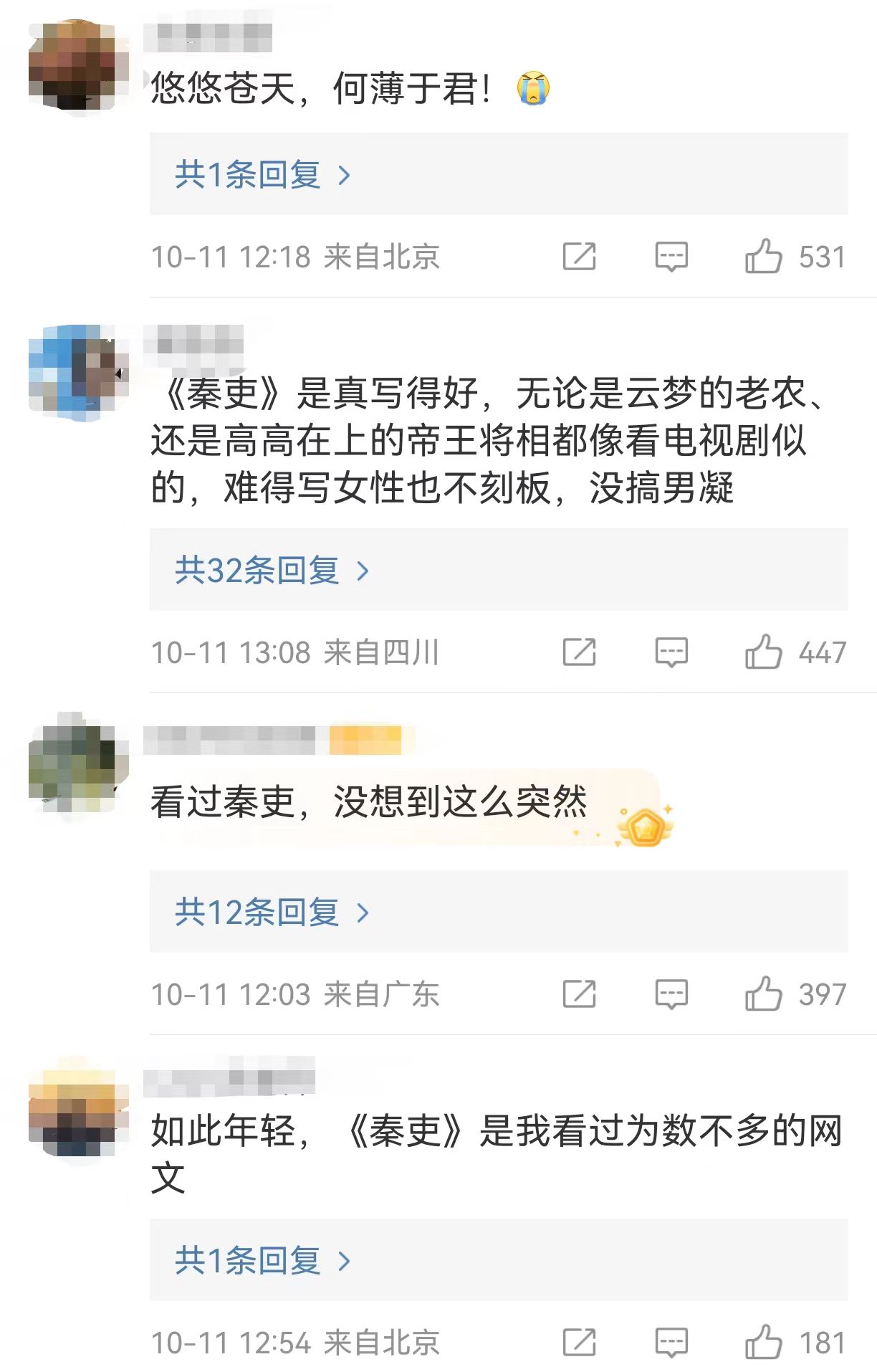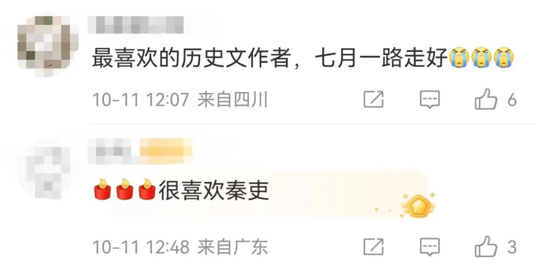 閱文集團發布的訃告里寫道:“七月新番一生赤誠,專注。他有志于循中國歷史脈絡,由遠及近,針對各個歷史時期完成相應的故事創作。為此,他嚴謹推敲,細致考據,從極少作家涉足的春秋戰國題材起筆,扎實書寫秦、漢故事。他所塑造的黑夫、任弘、第五倫等角色,燦爛鮮活,引讀者共鳴、共情,如今中斷于三國篇,我們深感悲痛、遺憾?!?/p>
