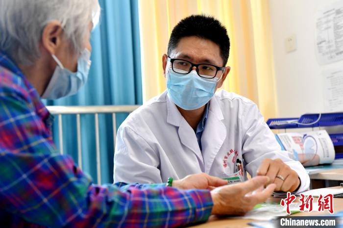 10月9日,現就職于福州市皮膚病防治院的臺籍醫生陳柏叡在與一名患者交流。 中新社記者 呂明 攝