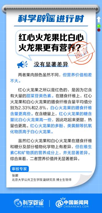 中新網10月16日電 在膳食纖維上,白心火龍果的膳食纖維含量更高些;在含糖量上,紅心火龍果的糖含量比白心火龍果高一些,熱量也更高;紅心火龍果的多酚、類黃酮等抗氧化物質高于白心火龍果。二者在維生素C和礦物質的營養成分上,并無顯著差異。綜合來看,二者營養價值相差不大。(來源:@科學辟謠 @中國新聞網 )