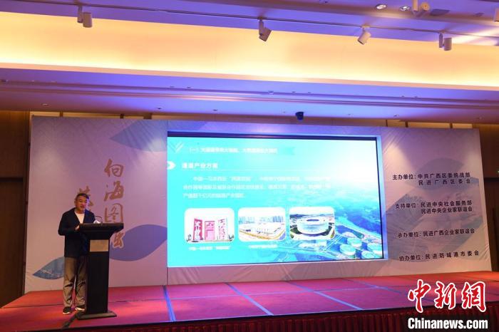 圖為廣西壯族自治區投資促進局相關負責人進行招商推介。民進廣西區委供圖