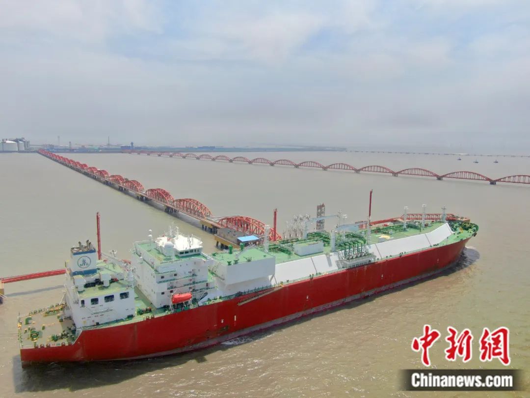 2021年5月,在江蘇省如東縣洋口港中石油江蘇LNG接收站碼頭,來自阿爾及利亞的“科洛尼斯”LNG船正在接卸進口天然氣。許叢軍 攝