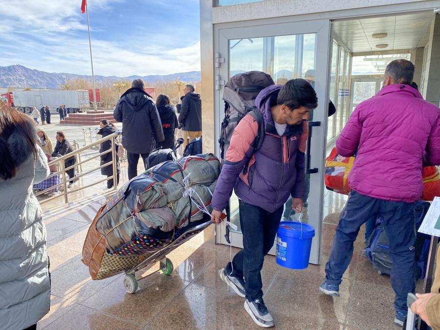 中國網11月8日訊(記者 王冉) 11月6日上午9點,來自巴基斯坦的穆罕默德·伊斯梅爾和同伴們在紅其拉普口岸聯檢大廳外等待通關,這是他今年第16次從該口岸往返中巴。從這里出發,穆罕默德·伊斯梅爾只需花費225元,即可乘坐國際道路旅客(旅游)班車抵達巴基斯坦蘇斯特口岸,全程約5個小時。