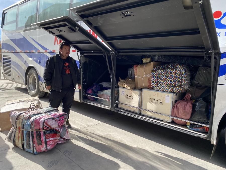 11月6日,國際道路旅客(旅游)班車裝滿了旅客的行李。(中國網記者 王冉 攝)