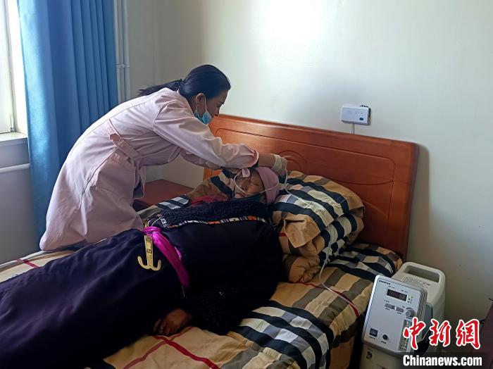 圖為敬老院工作人員給老人用上制氧機。青海省民政廳供圖